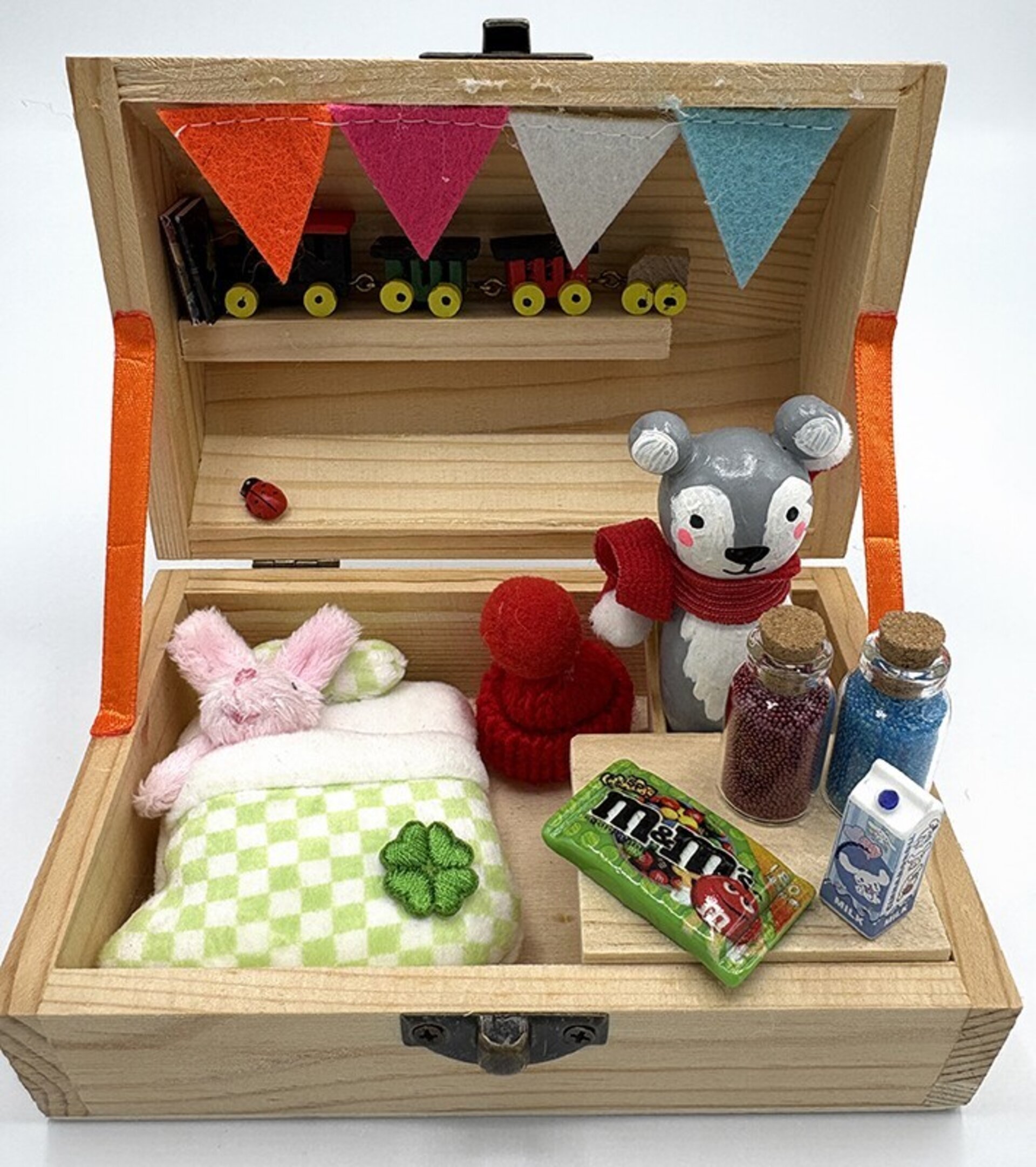 Cajita madera osito polar con miniaturas - Adopta una mascota